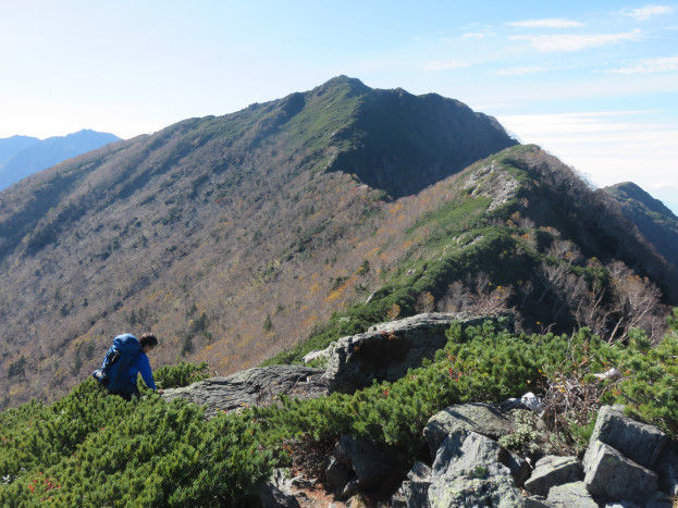 気持ちの良い稜線歩きは山頂まで続かず、アサヨ峰直下に近づけば岩場が出てきます。