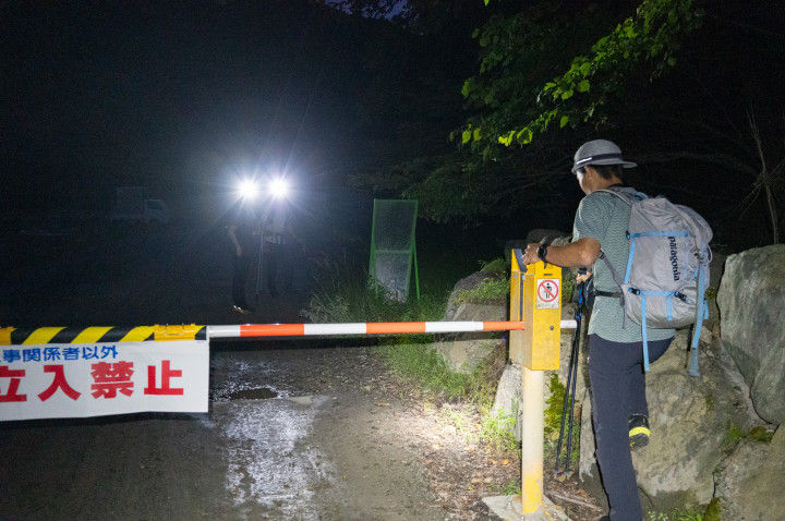 「工事関係者以外 立入禁止」と書かれているゲートを越えてから、今回の登山はスタートです。