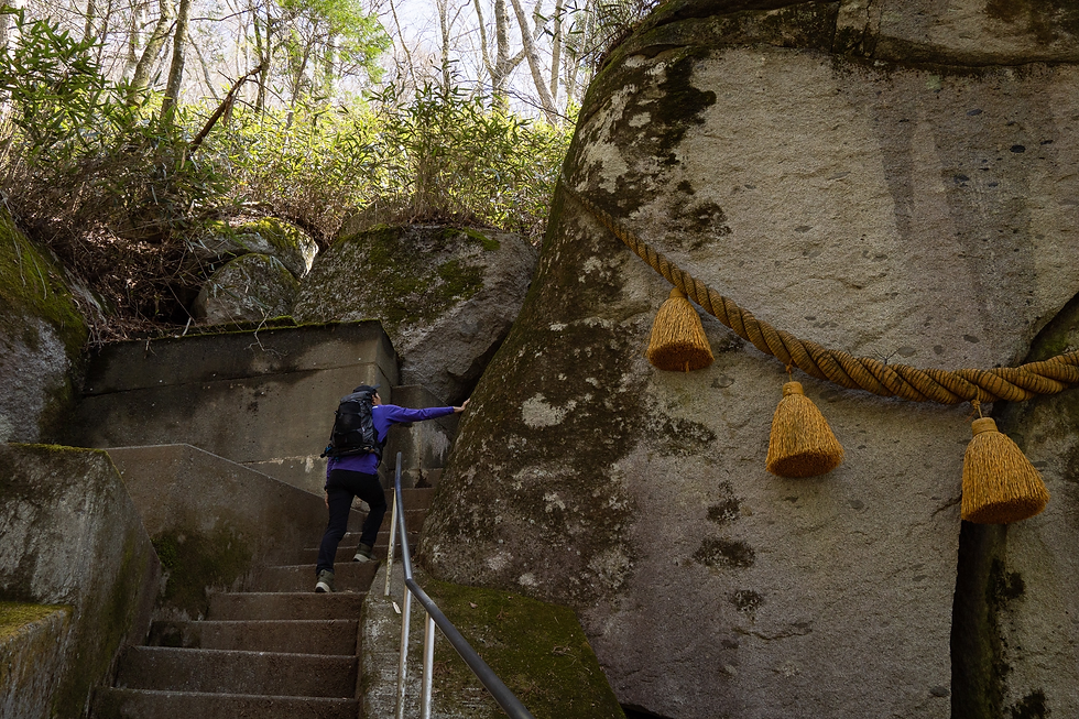 ご神体の大岩の隙間を三回通れば幸運が訪れるといういわれもあり、せっかくなので回ってきました。